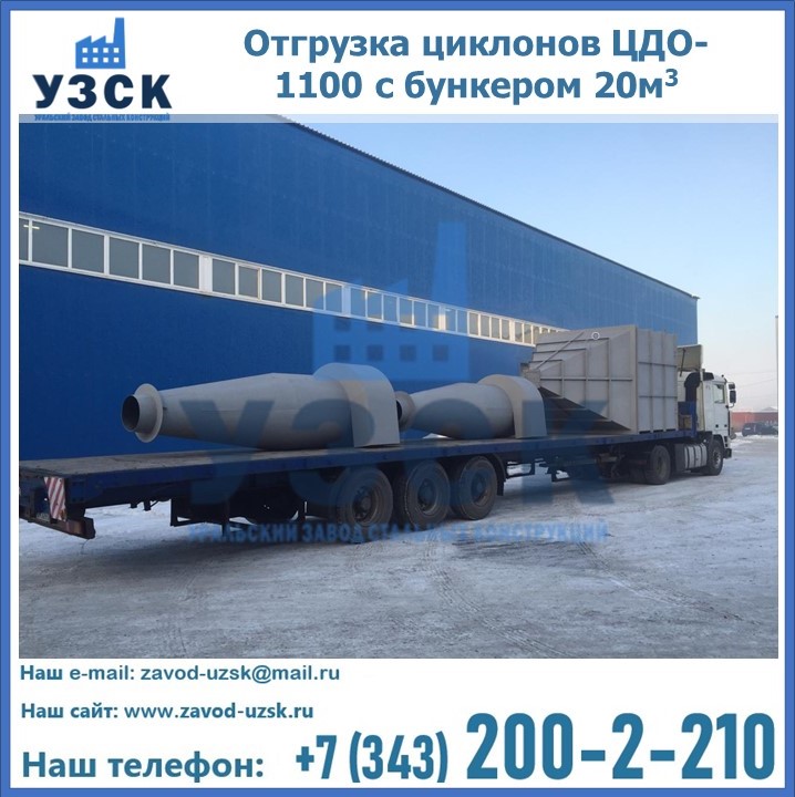 Циклоны ЦДО-1100 с бункером на 20 кубов были отгружены в декабре 2018 года в г. Новосибирск Калининград.