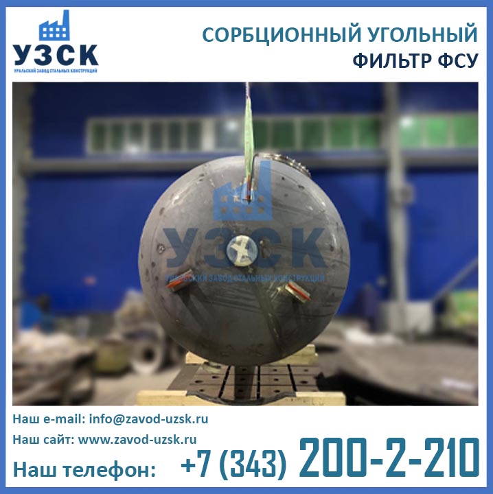 Качественную работу отопительных и промышленных котельных, линий по очистке конденсата и природных вод, электростанций обеспечивает фильтр сорбционный угольный типа ФСУ — вертикальный сосуд с одной камерой цилиндрической формы. Основное назначение оборудования состоит в глубокой очистке возвращаемого с производства конденсата от запахов, органических загрязнений и привкусов. Использование ФСУ в системах водоподготовки гарантирует очищение субстанции от масел, органических примесей, остатков нефтепродуктов до нормального значения — 0.52-1.0 мг/л. Купить в Калининграде угольные фильтры предлагает наш Уральский завод стальных конструкций. Мы выполняем производство ФСУ под нужды предприятия, возможно изготовление сорбционных фильтров ФСУ из нержавеющей стали включая корпус и внутренние устройства.