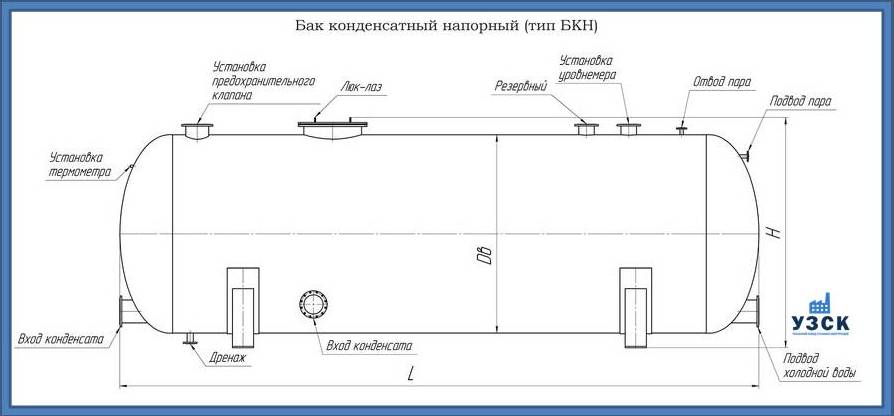 Многие заказчики стараются конденсатные баки купить по выгодной цене в компании «УЗСК» в Калининграде. Причин несколько. Производитель поставляет емкости с полным комплектом лестниц, площадок обслуживания. Бак после гидравлических испытаний покрывают специальной внутренней и наружной краской, накладывают теплоизоляцию или наваривают крепеж для навески минматов. Условия теплоизоляции согласуются с заказчиком.