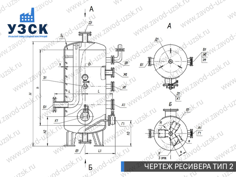 Ресивер высокого давления — это специализированное оборудование, разработанное для накопления и хранения воздуха или газа под давлением, а также для подачи рабочей среды на технологические линии предприятий. Завод «УЗСК» осуществляет изготовление газовых и воздушных ресиверов (воздухосборников) любой сложности. Мы предлагаем самые выгодные цены на ресиверы из углеродистой стали, ресиверы из легированной стали и ресиверы из нержавеющей стали в Калининграде.