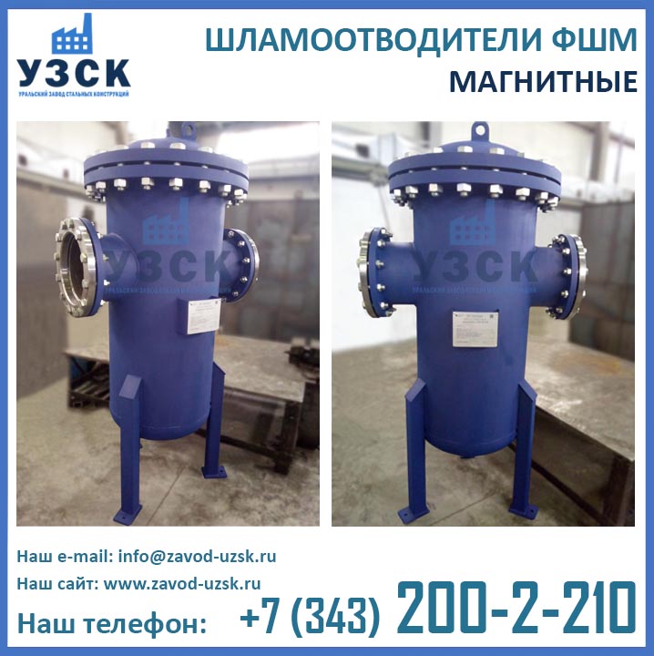 Являясь непосредственным изготовителем фильтров магнитных ФШМ, Уральский завод стальных конструкций предлагает самые низкие цены на шламоотделители ФШМ Ду250 в Калининграде. Производство магнитных шламоотводителей осуществляется в самые короткие сроки специалистами сварочного производства НАКС по аттестованной технологии сварки при помощи сварочного оборудования, аттестованного Национальным агентством контроля сварки.